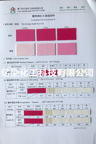 廈門市億染化工科技有限公司是一家集研發(fā)、生產(chǎn)、銷售一體的綜合型企業(yè)。公司主要經(jīng)營:酸性染料、金屬絡(luò)合染料、高牢度分散染料及印染助劑。公司信守“以誠信贏合作、以質(zhì)量贏市場、以創(chuàng)新贏發(fā)展、以服務(wù)贏生存”的企業(yè)精神服務(wù)于廣大客戶,多年以來建立了良好的市場口碑,市場遍布福建、廣東、浙江、江蘇、山東及東南亞國家,與多家知名企業(yè)建立了長期合作伙伴關(guān)系!